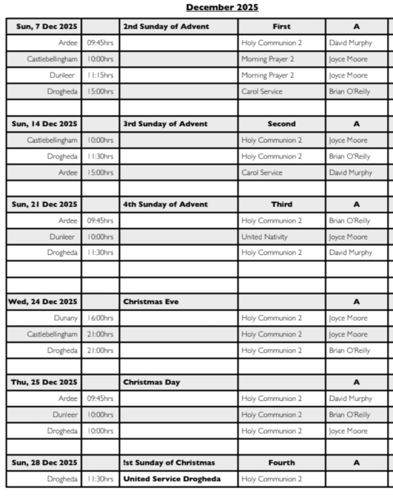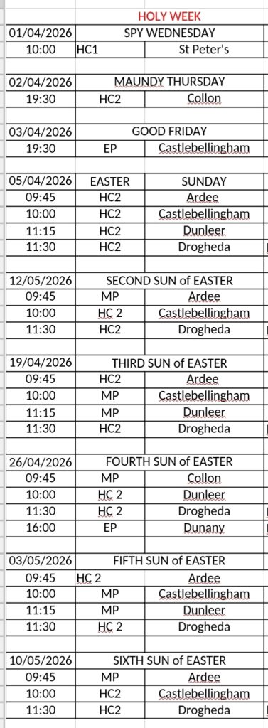 Services in Drogheda, Ardee and Kilsaran Unions of Parishes