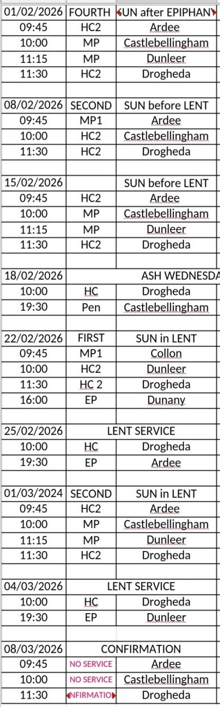 Services in Drogheda, Ardee and Kilsaran Unions of Parishes